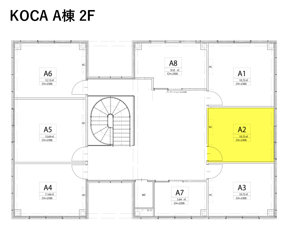 KOCA A棟2階にA2区画の入居者を募集いたします。